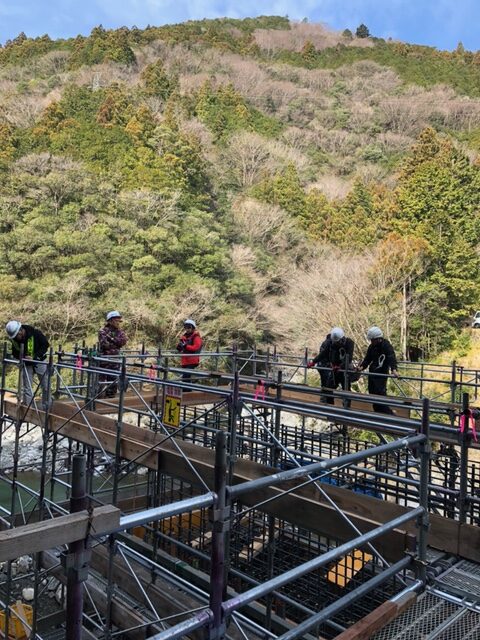 本日の作業は橋台の型枠組立です