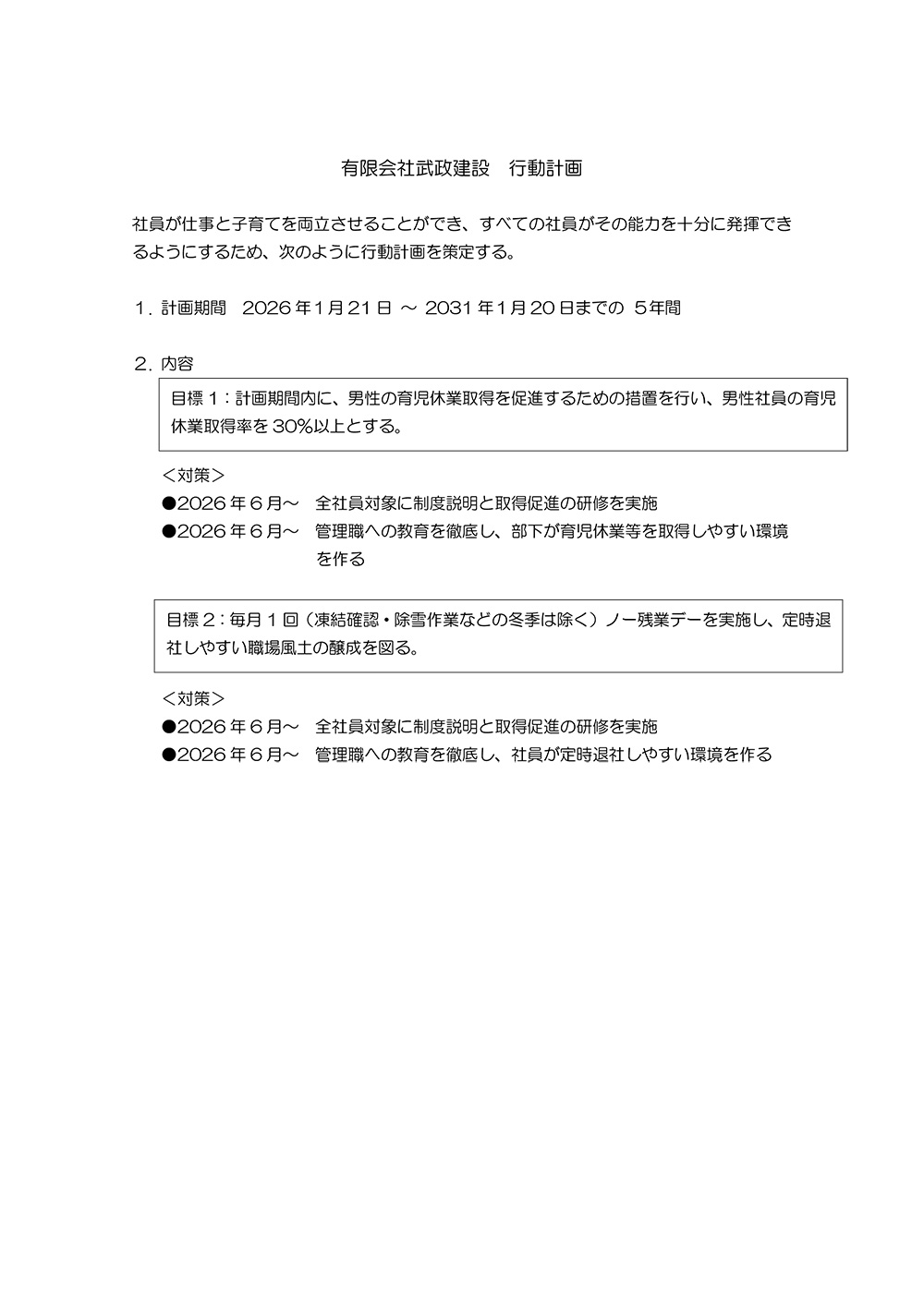 社員が仕事と子育てを両立させることができ、すべての社員がその能力を十分に発揮できるようにするため、行動計画を策定しています。